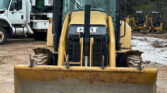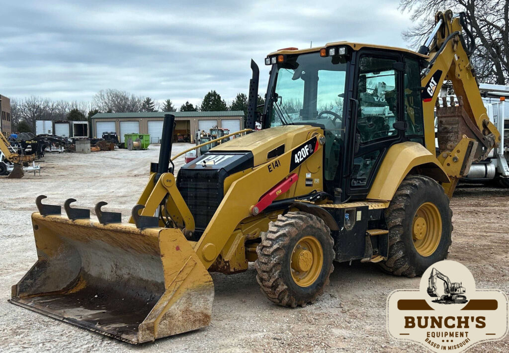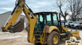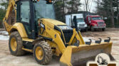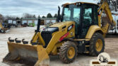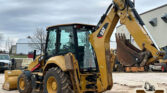The 2018 Caterpillar 420F2 backhoe has 2,457 hours and features a 4-cylinder Caterpillar diesel engine. It has a shuttle shift transmission with 4 forward and 4 reverse speeds, and is equipped with four-wheel drive and a differential lock. The enclosed cab includes AC and heat, with pilot controls for the backhoe. The machine features an 89″ loader bucket with a bolt-on cutting edge, an extendable stick with a manual quick coupler, and auxiliary hydraulics. The backhoe bucket is 18″ wide with 4 teeth. It has front tires sized 320/80-18 and rear tires 19.5L-24, with ride control for added stability.
