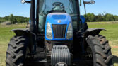 The 2014 New Holland T6.175 MFWD tractor has 891 hours and is powered by a six-cylinder diesel engine with a Powershift transmission (16F-16R) and a left-hand reverser. It features differential lock, AC, heat, and a light bar. The tractor is equipped with a New Holland FM-750 display, auto steer, a 1000 PTO, a three-point hitch, seven-pin outlet, and four hydraulic remote sets. It includes 10 suitcase weights and has 14.9-30 front tires and 18.4-42 rear tires, with 6…